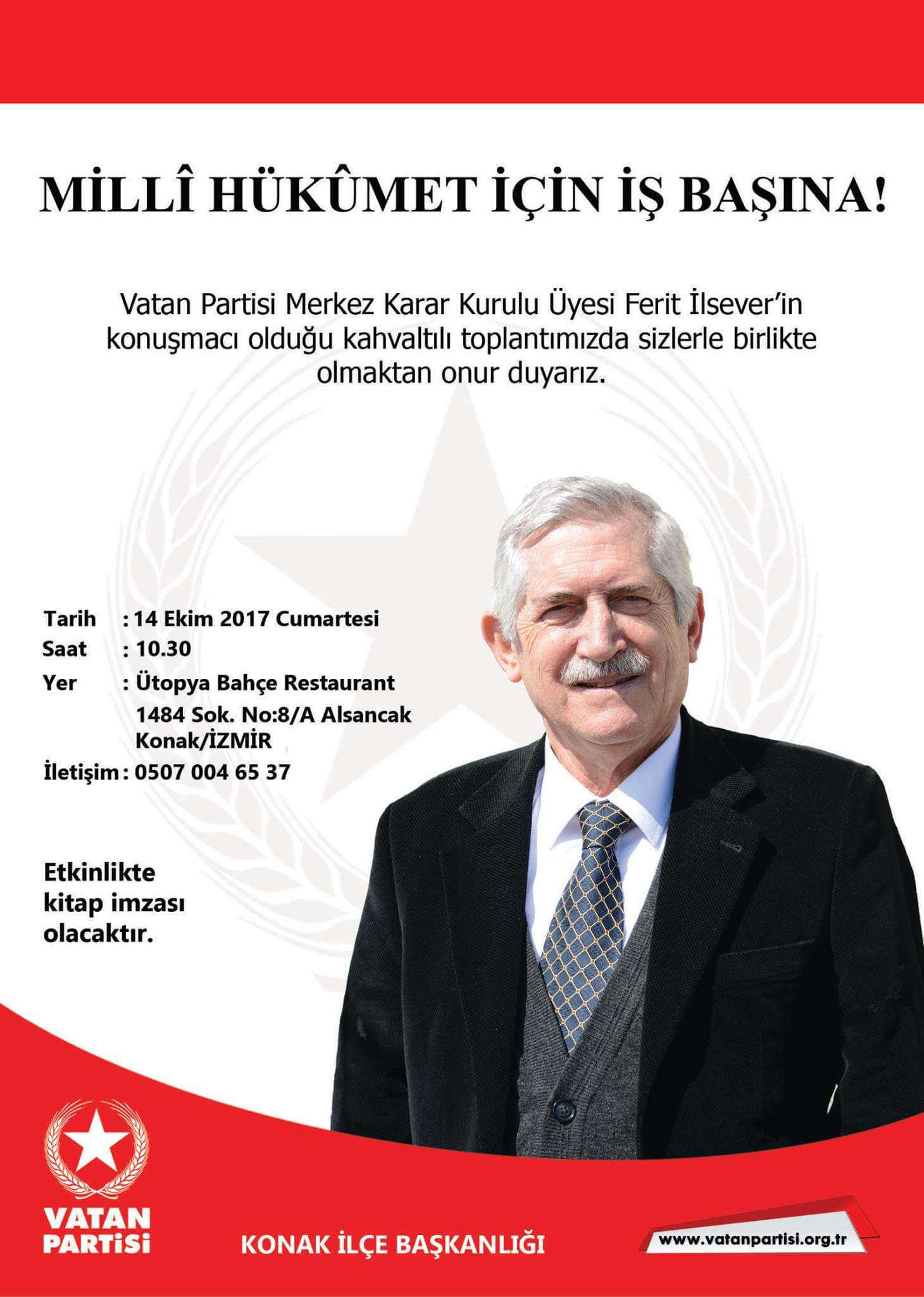 Vatan Partisi Konak On Twitter Vatan Partisi Mkk Uyesi Ferit Ilsever In Konusmaci Oldugu Kahvaltili Toplantimiz 14 Ekim Cumartesi Gunu 10 30 Da Utopya Bahce Restaurant Ta Https T Co Oukwff8yvt