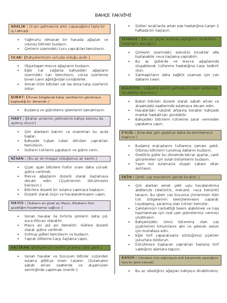 Yillik Bahce Bakim Takvimi